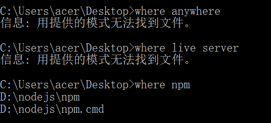 如果运行报错 “live-server不是内部或外部命令“,这就说明没有配置环境变量,需要在系统中加入npm的路径,具体路径可以运行