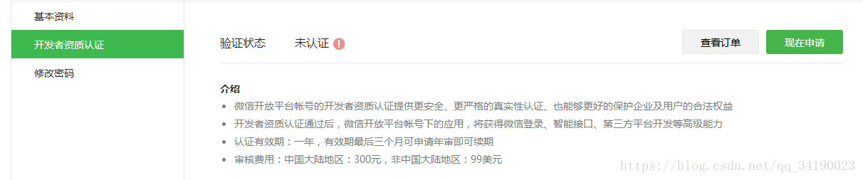 注:开发者认证费用为300.有效期一年,可在最后三个月申请年审续期