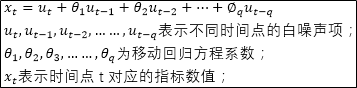 如果某个时间序列的任意数值可以表示成下面的回归方程,那么该时间序列服从q阶的移动平均过程,可以表示为MA(q):