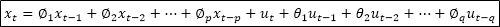 自回归移动平均模型由两部分组成:自回归部分和移动平均部分,因此包含两个阶数,可以表示为ARMA(p,q),p是自回归阶数,q为移动平均阶数,回归方程表示为: