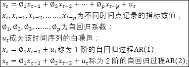 从回归方程可知,自回归移动平均模型综合了AR和MA两个模型的优势,在ARMA模型中,自回归过程负责量化当前数据与前期数据之间的关系,移动平均过程负责解决随机变动项的求解问题,因此,该模型更为有效和常用。