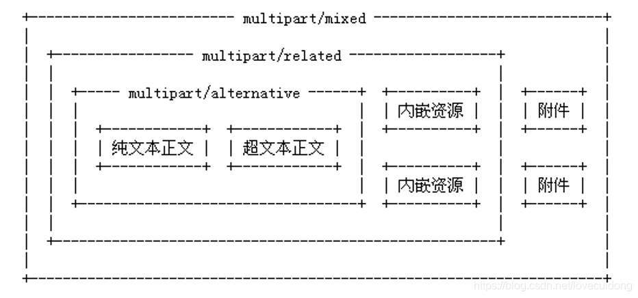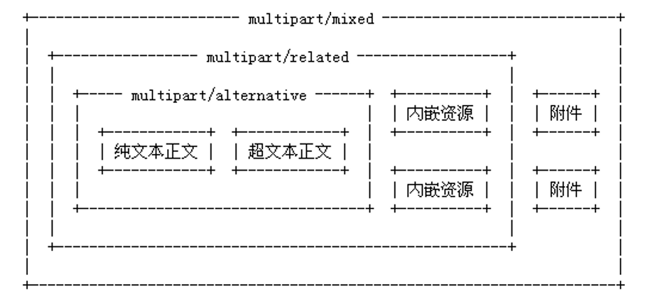 MIME邮件中除了可以携带各种附件外,还可以将其它内容以内嵌资源的方式存储在邮件中。比如我们在发送html格式的邮件内容时,可能使用图像作为html的背景,html文本会被存储在alternative段中,而作为背景的图像则会存储在multipart/related类型定义的段中。