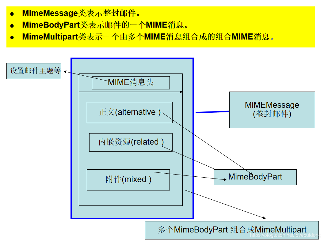 JavaMail API可以利用JAF从某种数据源中读取数据和获知数据的MIME类型,并用这些数据生成MIME消息中的消息体和消息类型。