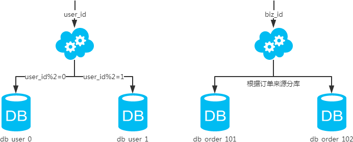 根据user_name查询时,先通过user_name_code生成函数生成user_name_code再对其取模路由到对应的分库或分表。id生成常用snowflake算法。