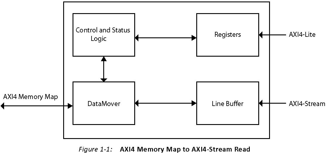 提供内存和AXI流视频类型的目标外设之间的高带宽存储访问,这类目标外设包括支持AXI4-流视频协议的设备。初始化、状态和管理寄存器通过AXI4-Lite从接口访问。