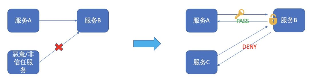在分布式服务调用时,需要对未知的或者不受信任的请求来源的请求进行识别和拒绝。权限控制一般分为两个阶段:身份识别(Authentication)和权限识别(Authorization)。身份认证主要确定访问者的身份,权限识别则判断这个访问者是否有对应资源的权限。