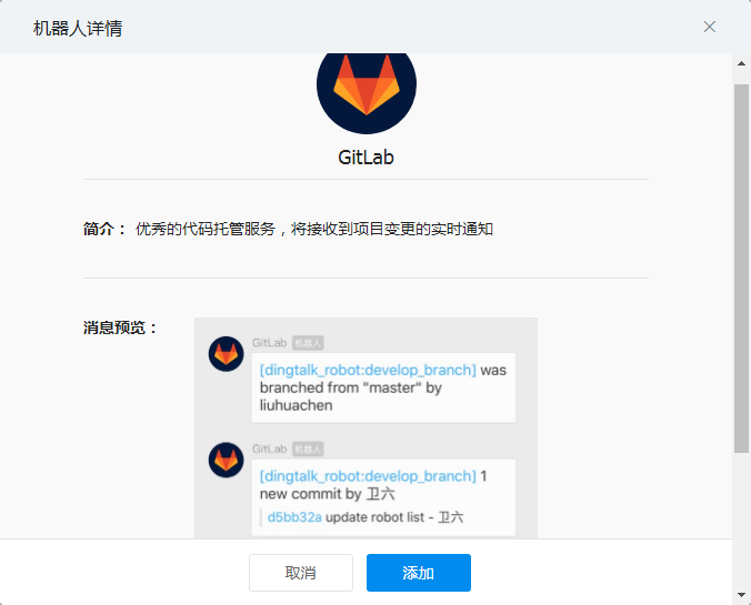 为了方便提交代码时候提醒下项目其他群成员,添加一下GitLab提交代码钉钉通知,个人感觉还是挺方便的,也算CICD工具的一部分,其他博主也有写,我这里算记个笔记。