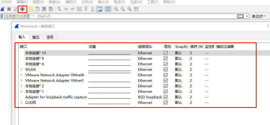 2选择需要抓包的网卡(无线网选择WLAN,有线选择对应的本地连接)