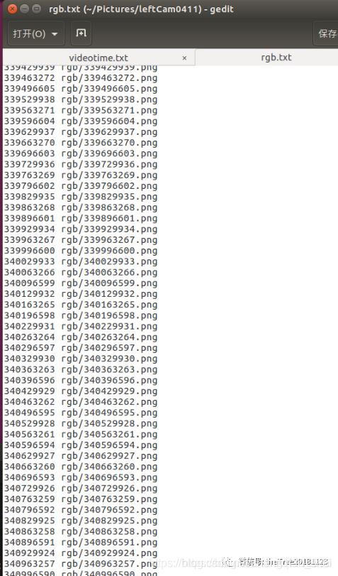 **第二步:制作rgb.txt文件。**拿到图片的时间信息,比如这里我的文件是videotime.txt