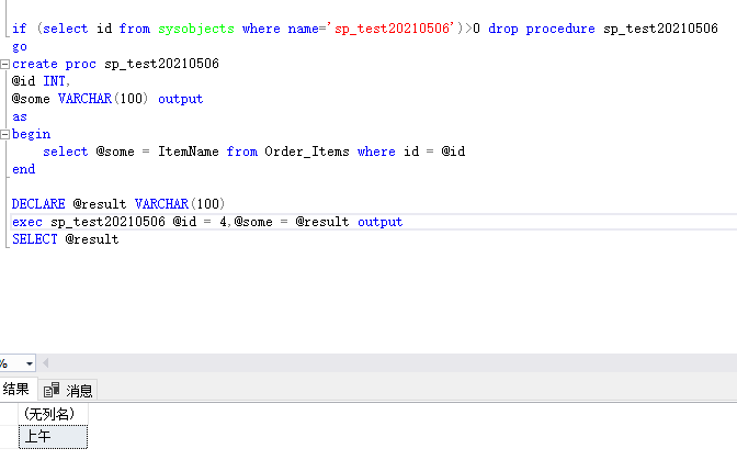 注:存储过程中as前面的是形参,as后面的是临时变量,用于存储过程