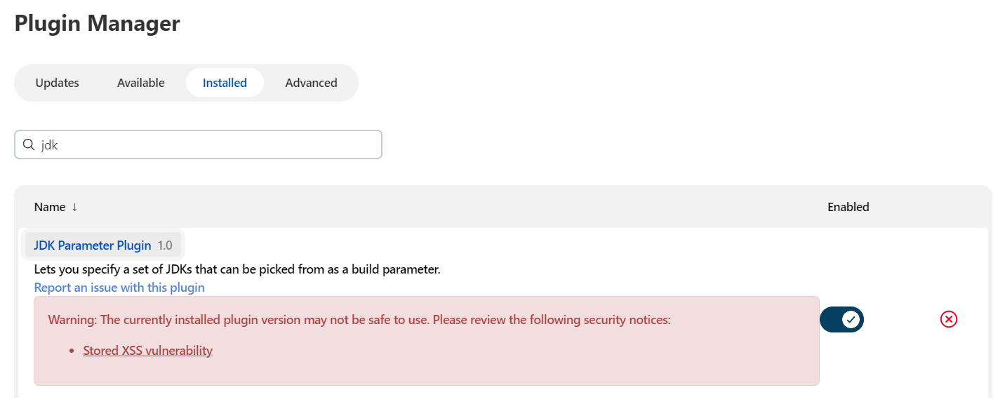 4.安装 JDK Parameter 插件 当前版本存在XSS漏洞,后续注意及时升级: