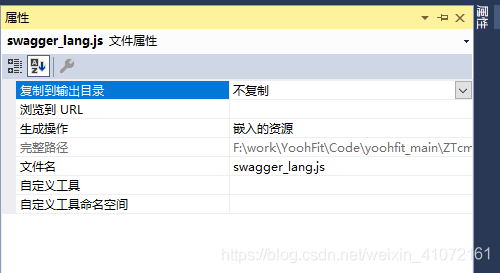 });重要,文件保存后,需要右击JS文件,选择属性,在属性窗口中,设置生成操作为:嵌入的资源
