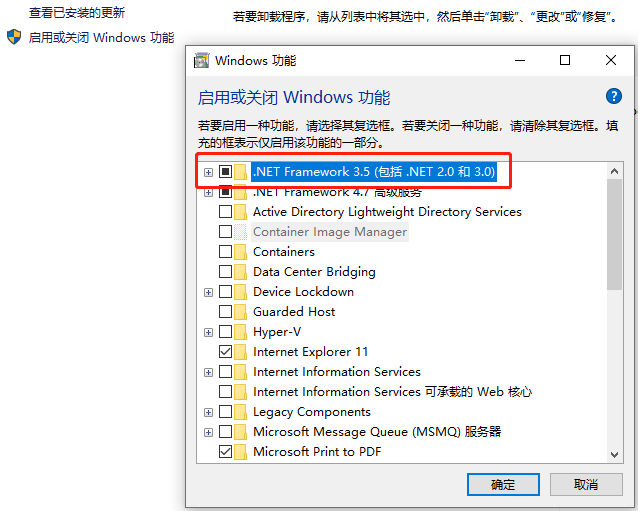 由于STEP 7 Prof&WinCC Prof依赖于.Net Framework 3.5,所以我们得首先安装这个。打开控制面板里面的“程序和功能”,点击“打开或关闭Windows功能”,然后勾选“.NET Framework 3.5(包括.NET 2.0和3.0)”即可,然后点击按钮“确定”。