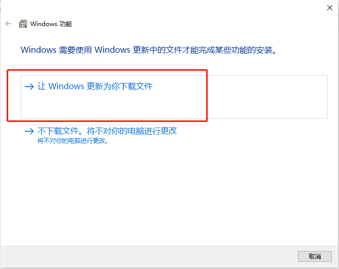再点击“让Windows更新为你下载文件”。