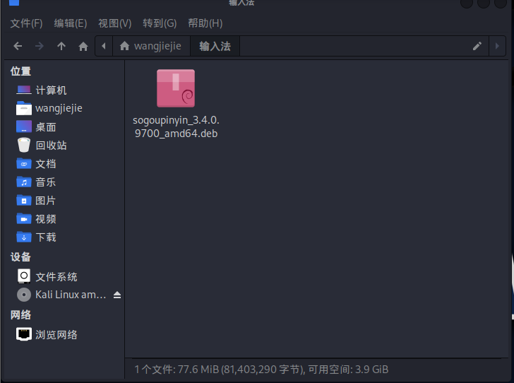 2.可以从主机直接拖到kali虚拟机当中,也可以在虚拟机中直接下载
