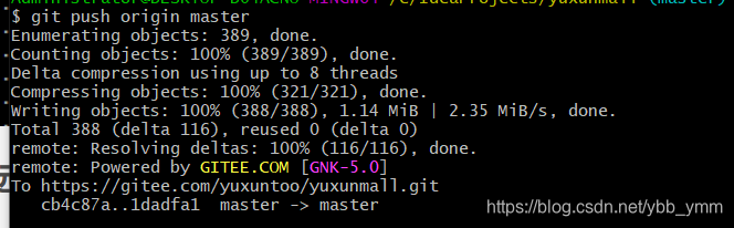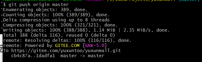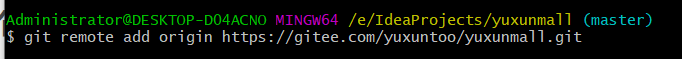 如: git remote add origin https://gitee.com/yuxuntoo/yuxunmall.git