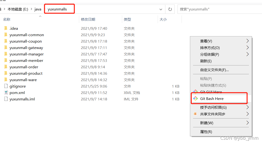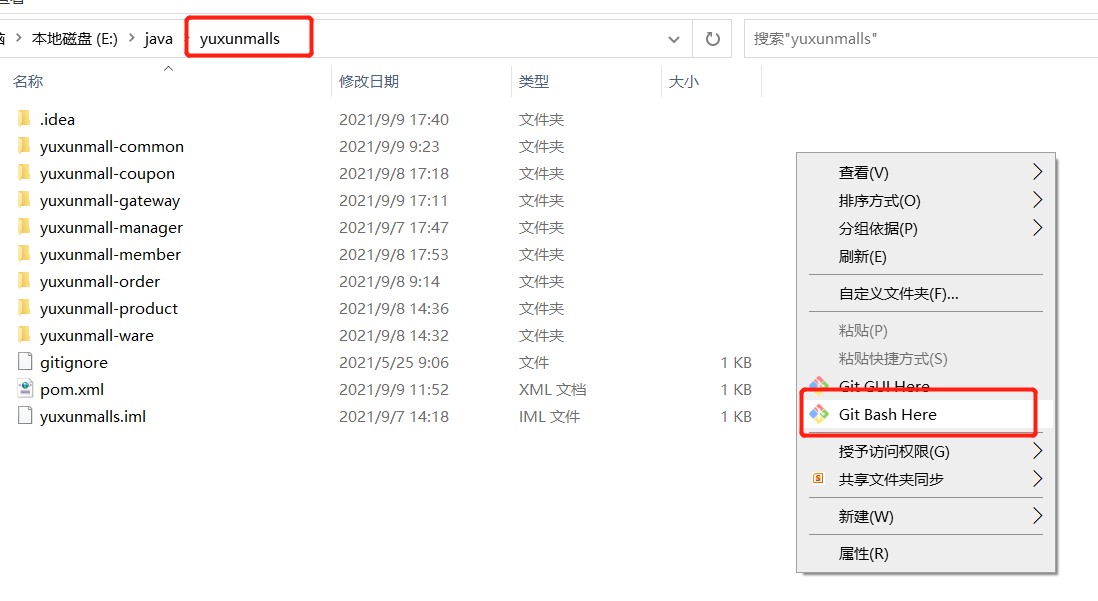 2、在本地项目目录下,右键。点击git bash here
