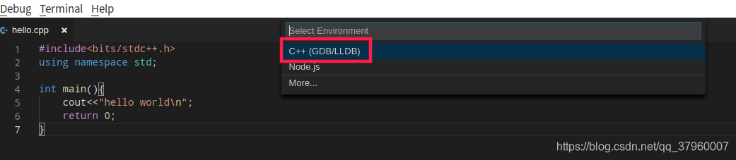 我们假装试着按F5运行一下,发现vscode提示我们选择调试程序,我们这里选择gdb