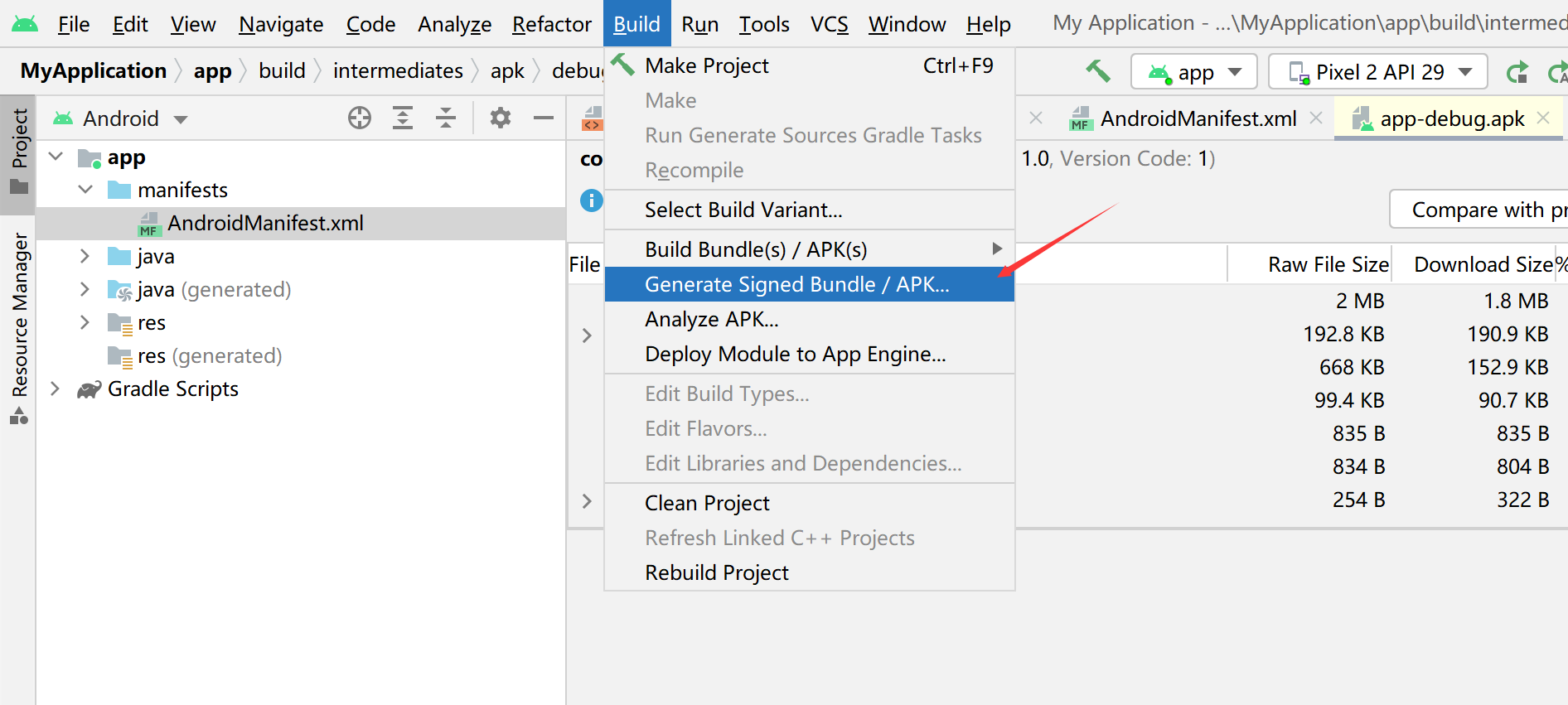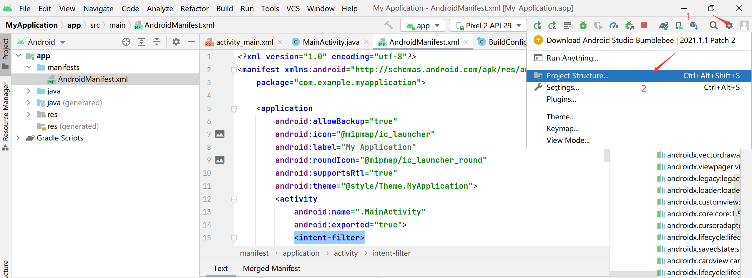 进入Android Studio,app>>manifests下文件找到 PackageName