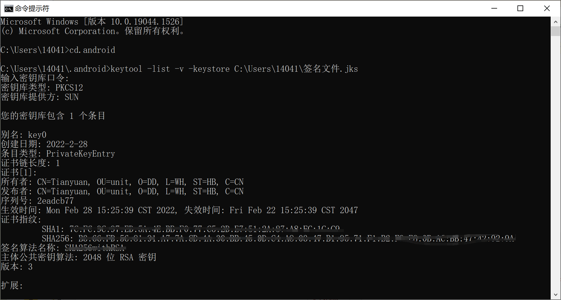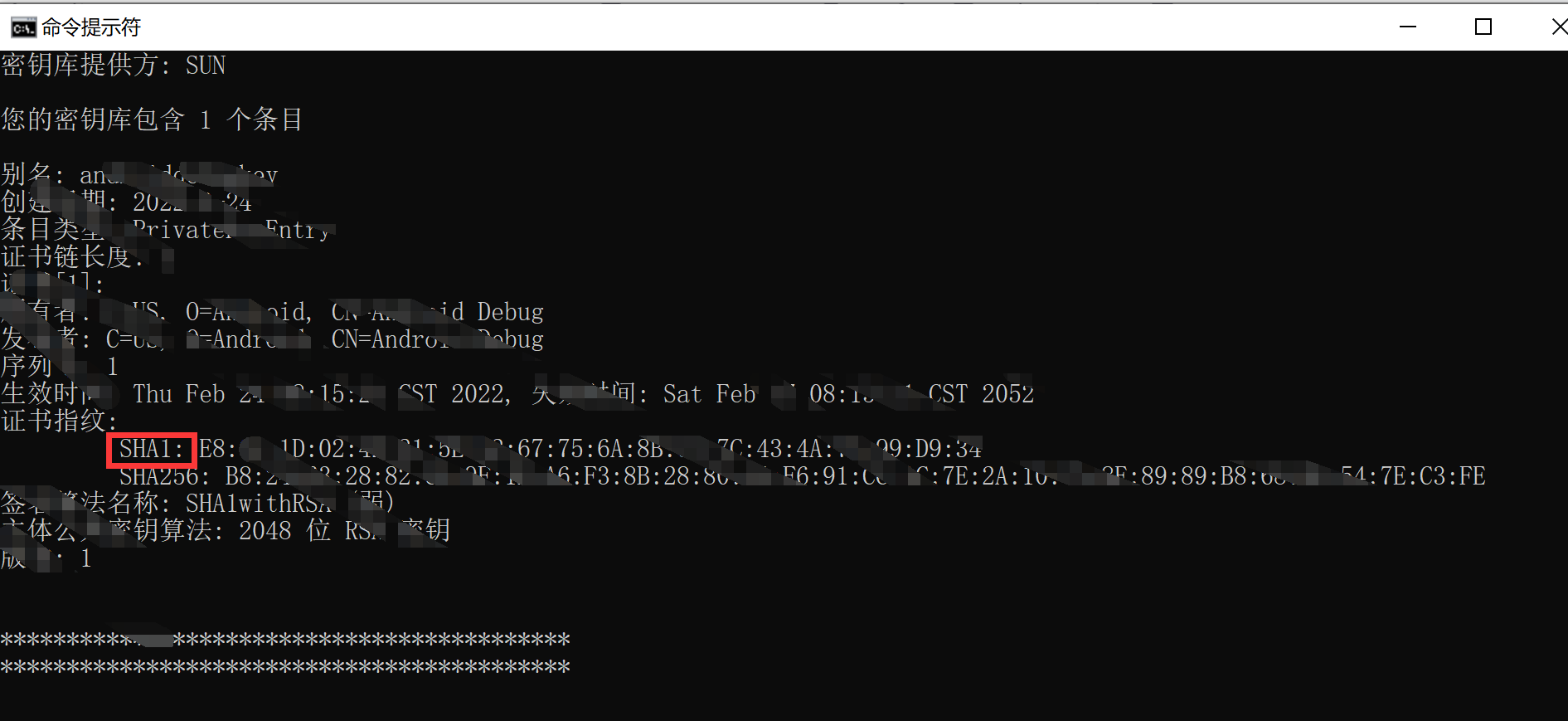 keytool -list -v -keystore debug.keystore,可以获取开发版SHA1