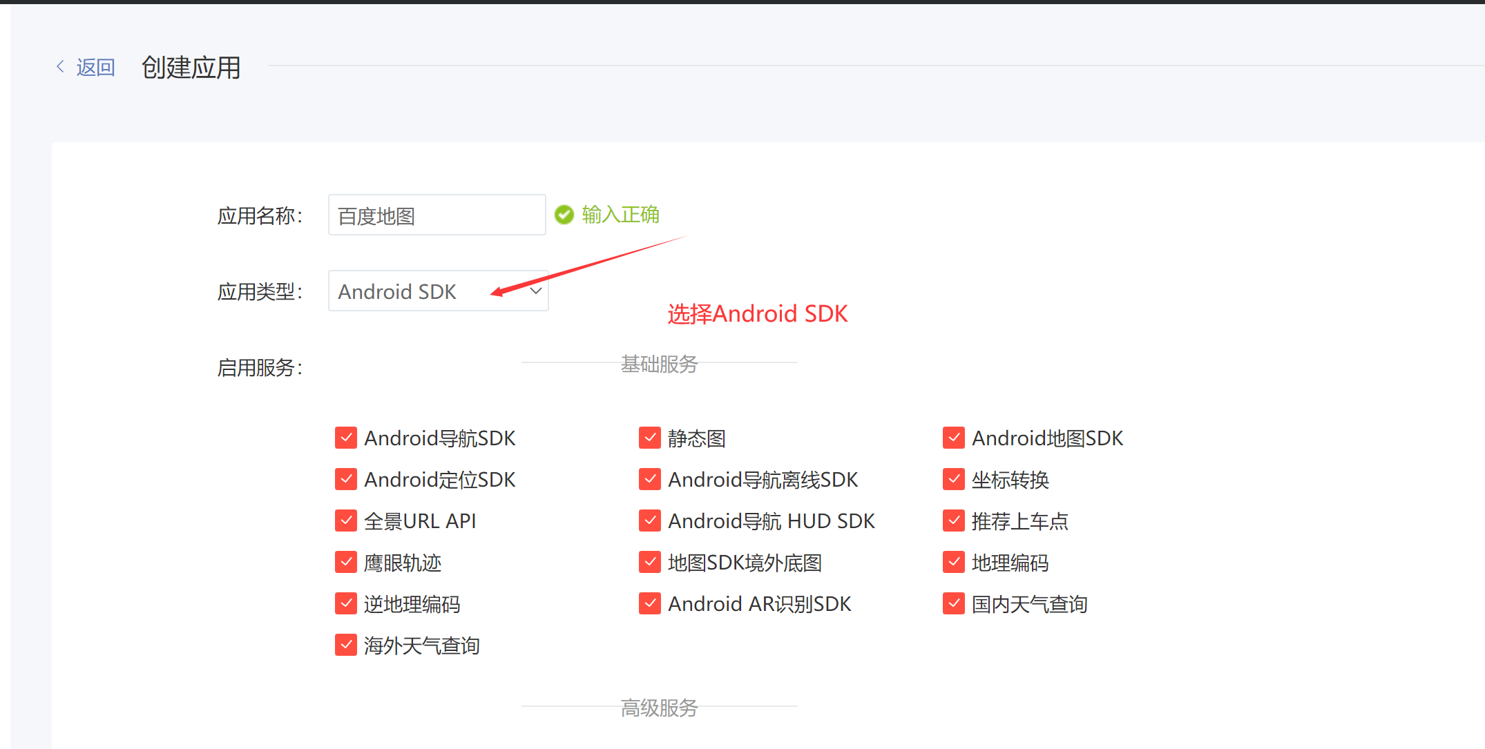 https://lbsyun.baidu.com/index.php?title=%E9%A6%96%E9%A1%B52、进入>>控制台>>应用管理>>我的应用>>创建应用
