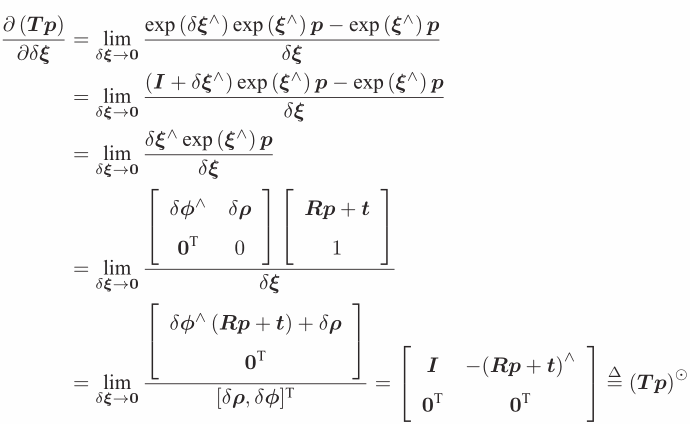 然后将两项相乘就可以得到我们想要的结果–重投影误差对被投影帧位姿的jacobian