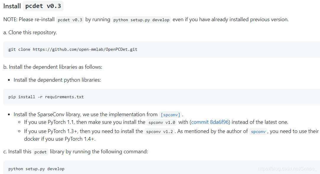 就是克隆代码,安装依赖项,安装spconv,以及安装pcdet,这里着重说明一下安装spconv。