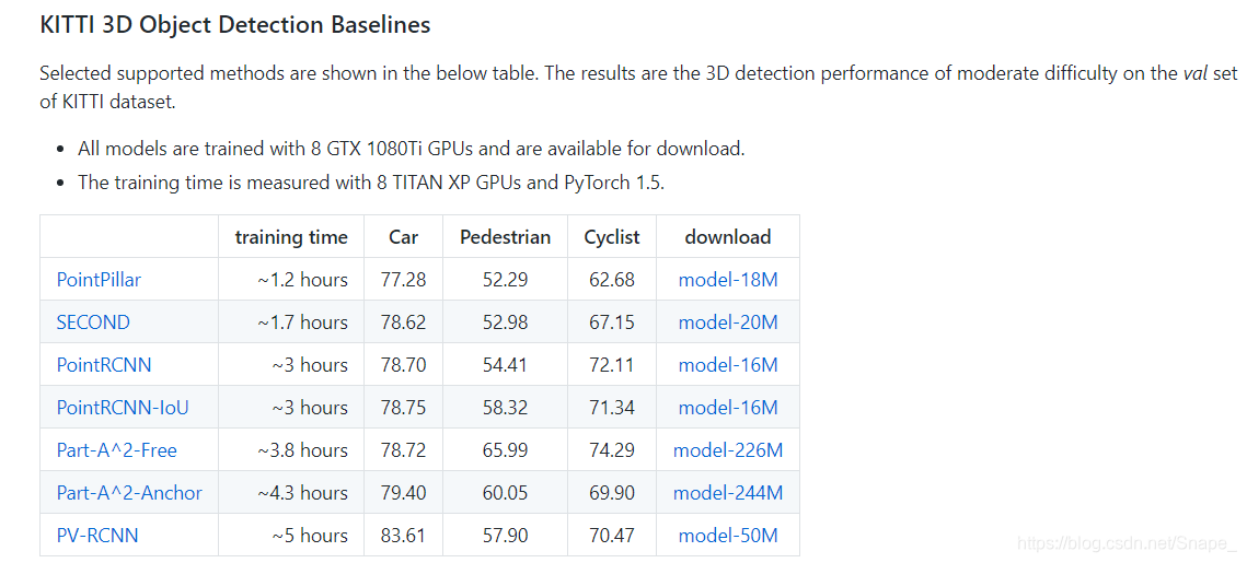 在了解自动驾驶中的环境感知,看了些基于点云的目标检测,想看看具体有怎样的效果,于是选择OpenPCDet这个看起来集成方法又多,文档又全的开源项目,此处为GitHub地址。