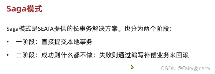 与TCC模式类似,但是TCC第一阶段只是将资源进行冻结,真正的去除还是在第二阶段的,而Saga模式是直接提交本地事务,第二阶段直接操作事务本身:成功则什么都不做,失败则通过编写补偿业务来进行回滚;