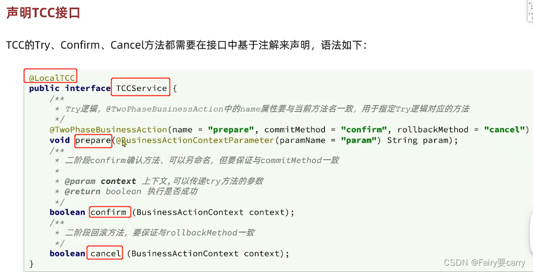 @TwoPhaseBusinessAction(name="confirm",commitMethod = "confirm",rollbackMethod = "cancel")