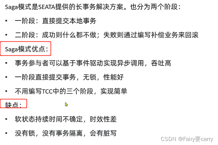 与AT相比没有用锁,与TCC比没有冻结资源,性能较好;