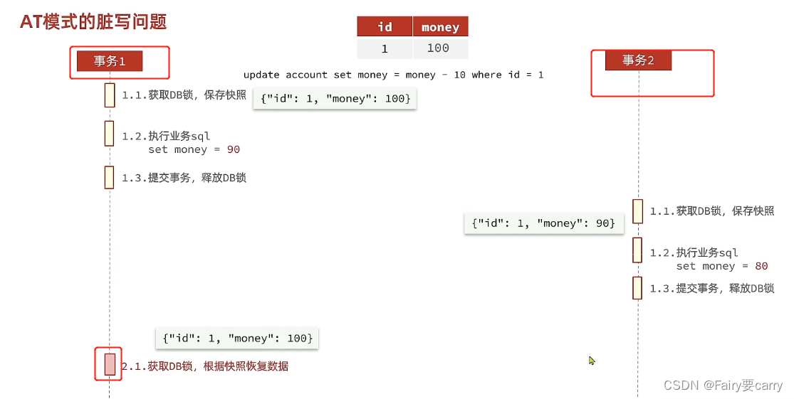 简而言之,就是两个事务并发执行,修改同一条数据,我第一个事务修改并且提交之后,释放DB锁资源,第二个事务想要进行回滚,那么就会导致脏写——>前一个事务修改无效