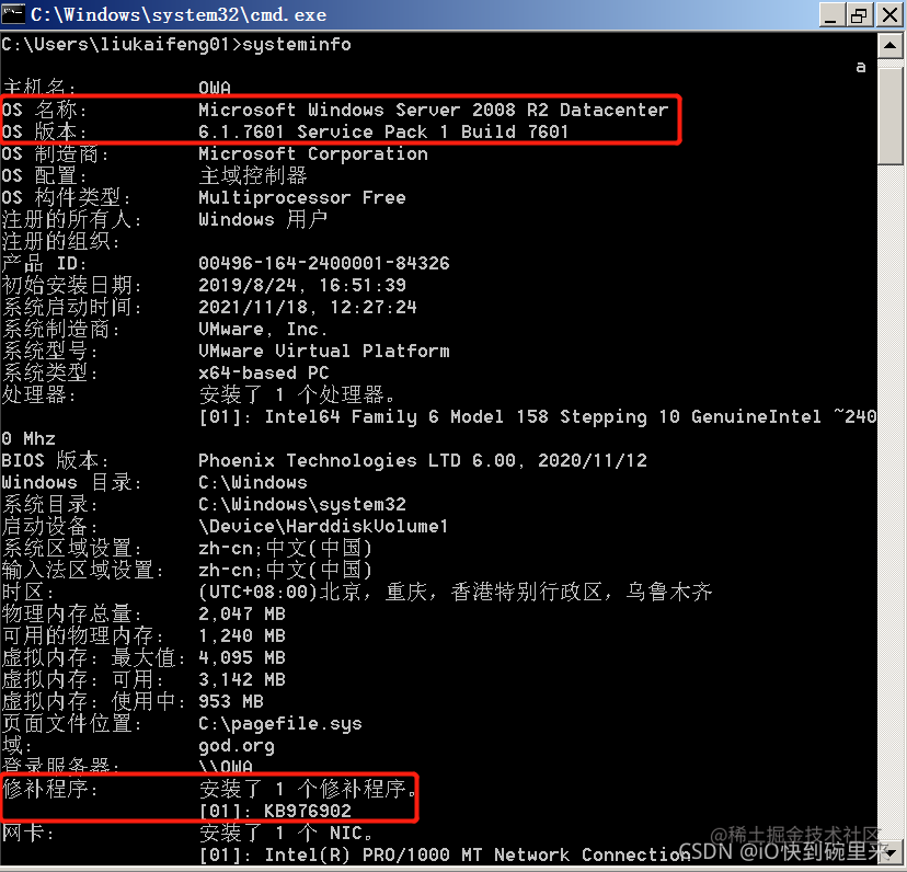 查看系统详细信息,如OS版本、补丁安装情况,可以根据这些信息筛选可利用的漏洞: