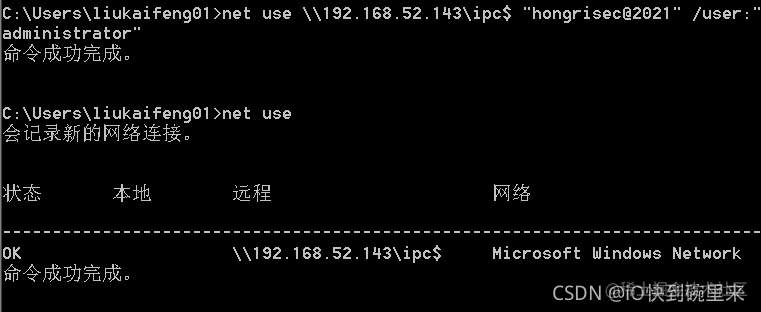 net use \\192.168.52.143\ipc$ "hongrisec@2021" /user:god\administrator