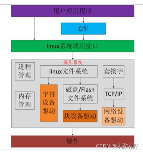 字符驱动在软件架构中的位置: