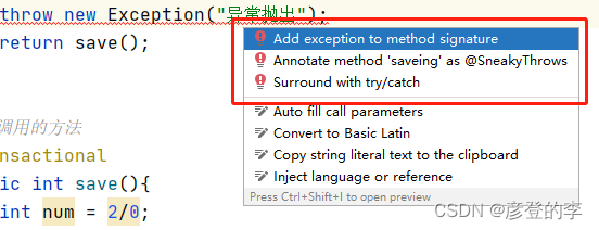 }2)使用代码手动回滚事务