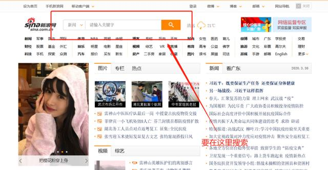 首先,如果从新闻直接进行搜索,你会发现其内容最多显示20页,因此我们要从新浪的首页进行搜索,这样才没有页数的限制。