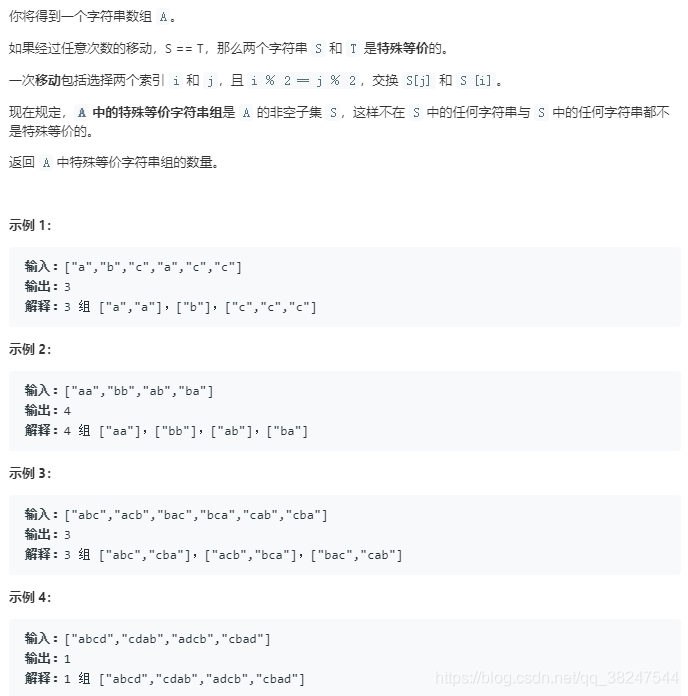 记录一下一道有意思的题目:来源:https://leetcode-cn.com/problems/groups-of-special-equivalent-strings/