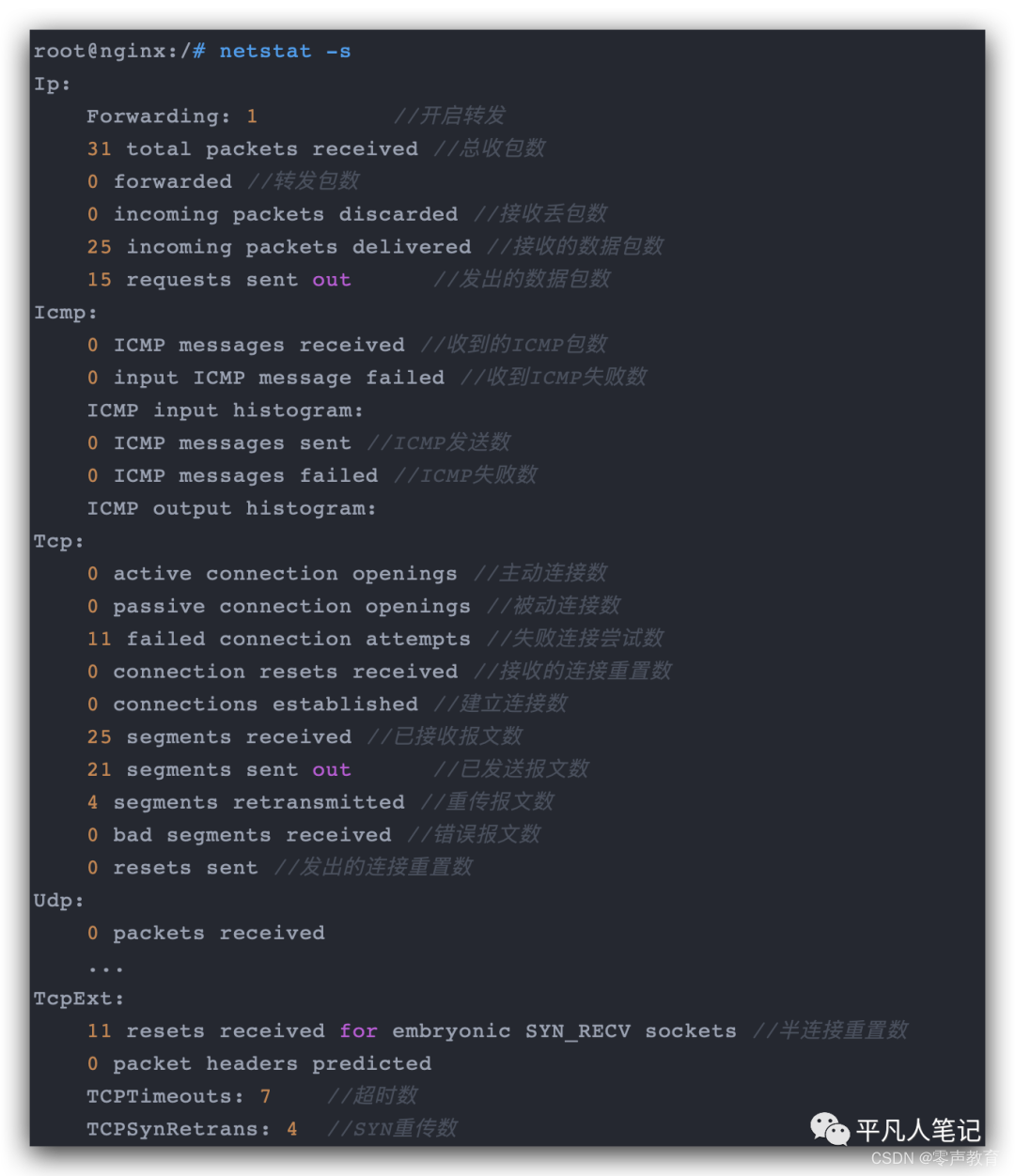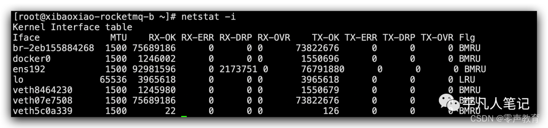 # netstat可以统计网路丢包以及环形缓冲区溢出netstat -i