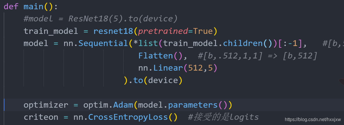 这里不再用自己写的resnet18了,而是加载已经train好的resnet