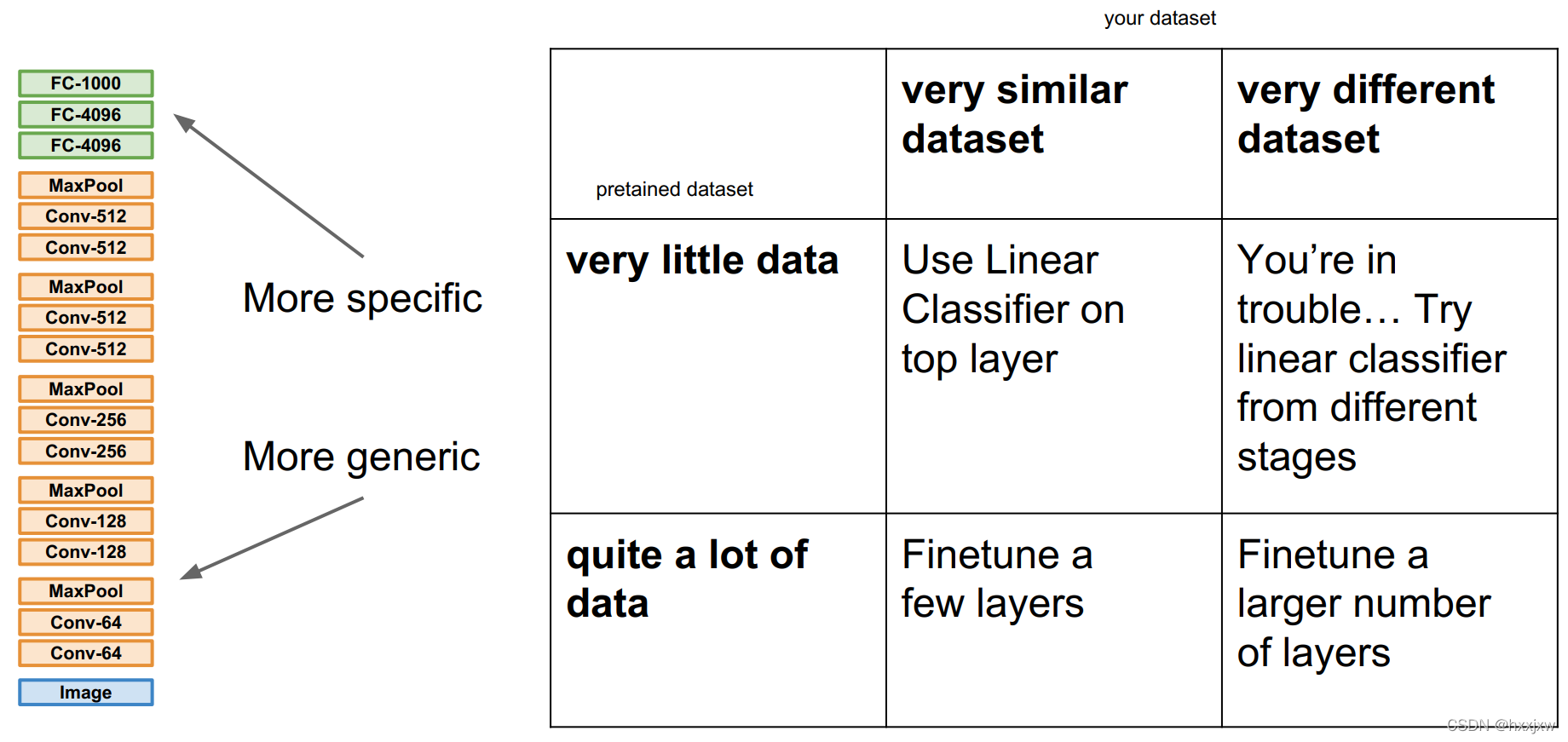 越底层的卷积提取的特征越generic,越高层提取的特征越specific