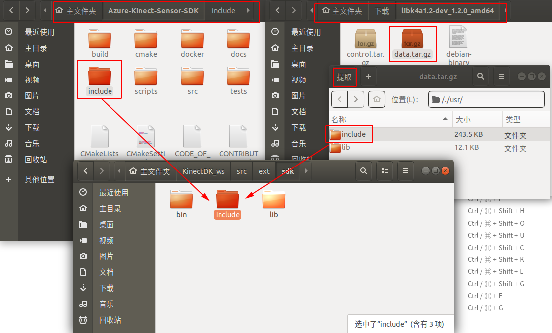 - include文件夹:SDK 源码里的include文件夹与从 deb 文件里提取出的 include 文件夹合并,拷贝过来