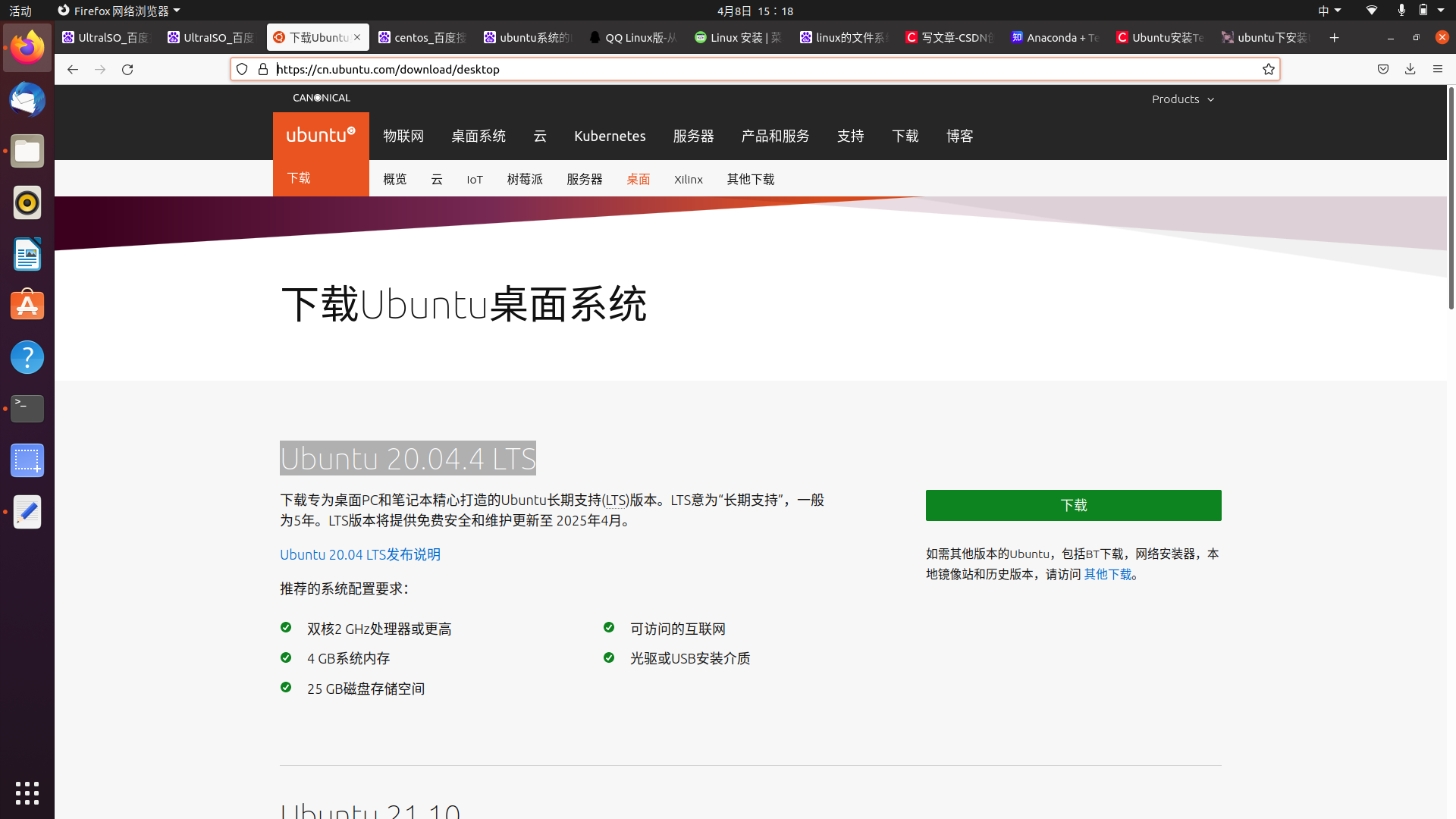注意:Linux系统有Ubuntu和Centos两种系统,这里下载的是Ubuntu LTS版本;