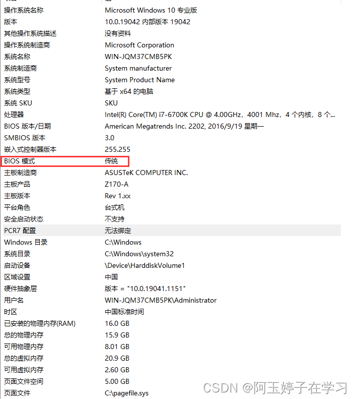 电脑bios模式的查看:win+r调出 运行 命令框,输出msinfo32即可查看。