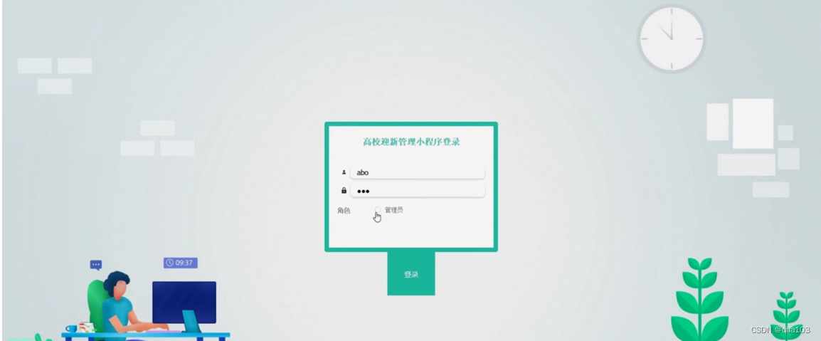 管理员登录,通过输入账号、密码,选择角色并点击登录进行系统登录操作,如图5-6所示。