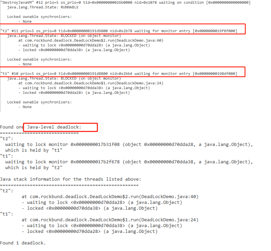 at java.lang.Thread.run(Thread.java:748)(2)死锁现象: