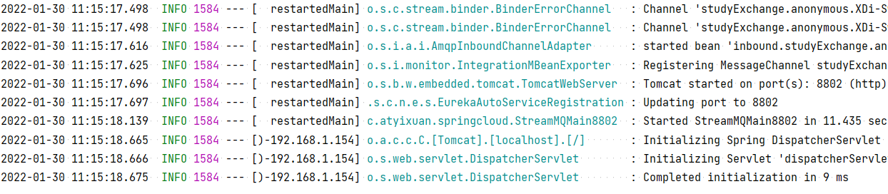 然后启动 cloud-stream-rabbitmq-consumer8802 和 cloud-stream-rabbitmq-consumer8803