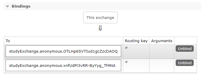 destination: studyExchange # 表示要使用的Exchange名称定义,此名称会在 RabbitMQ 网页上显示