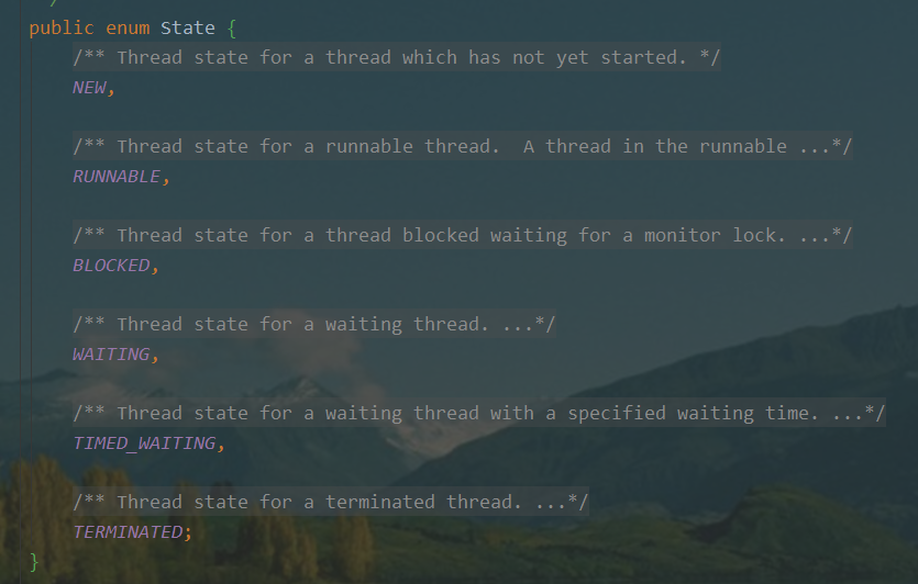 线程的状态可以使用getState()查看,更多状态详情,查看Thread源码,如下图: